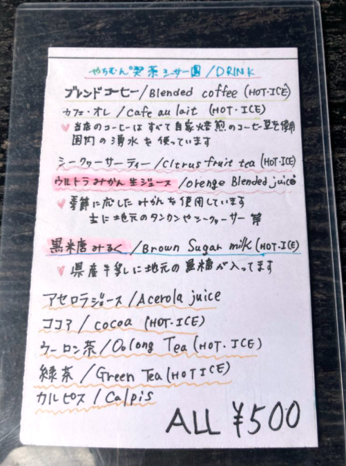 やちむん(焼物の事です)の販売もしてますね。 やちむんで頂く飲み物は、更に温かみを感じで美味しくなるんですよね~。