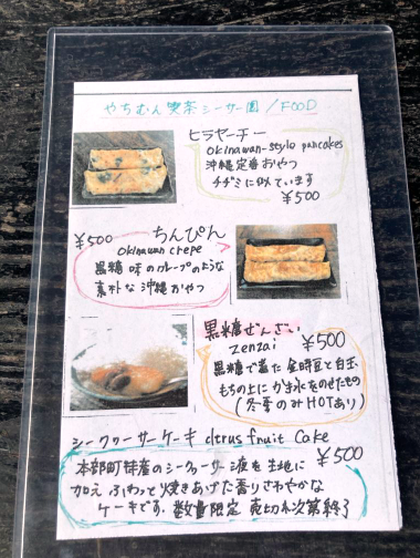 黒糖ぜんざい!今思えば、何故注文しなかったのかと後悔・・・。 この日はまだ何も食べていなく、お昼を過ぎてお腹も空いてしまったので、今回はヒラヤーチーをチョイス。