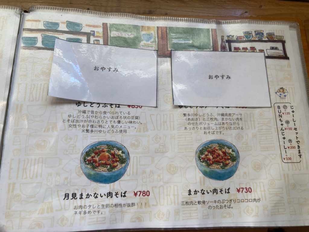 • 一般的な沖縄そばに比べたら、ややお値段が高いかもしれません(その分の味は保証できますが)