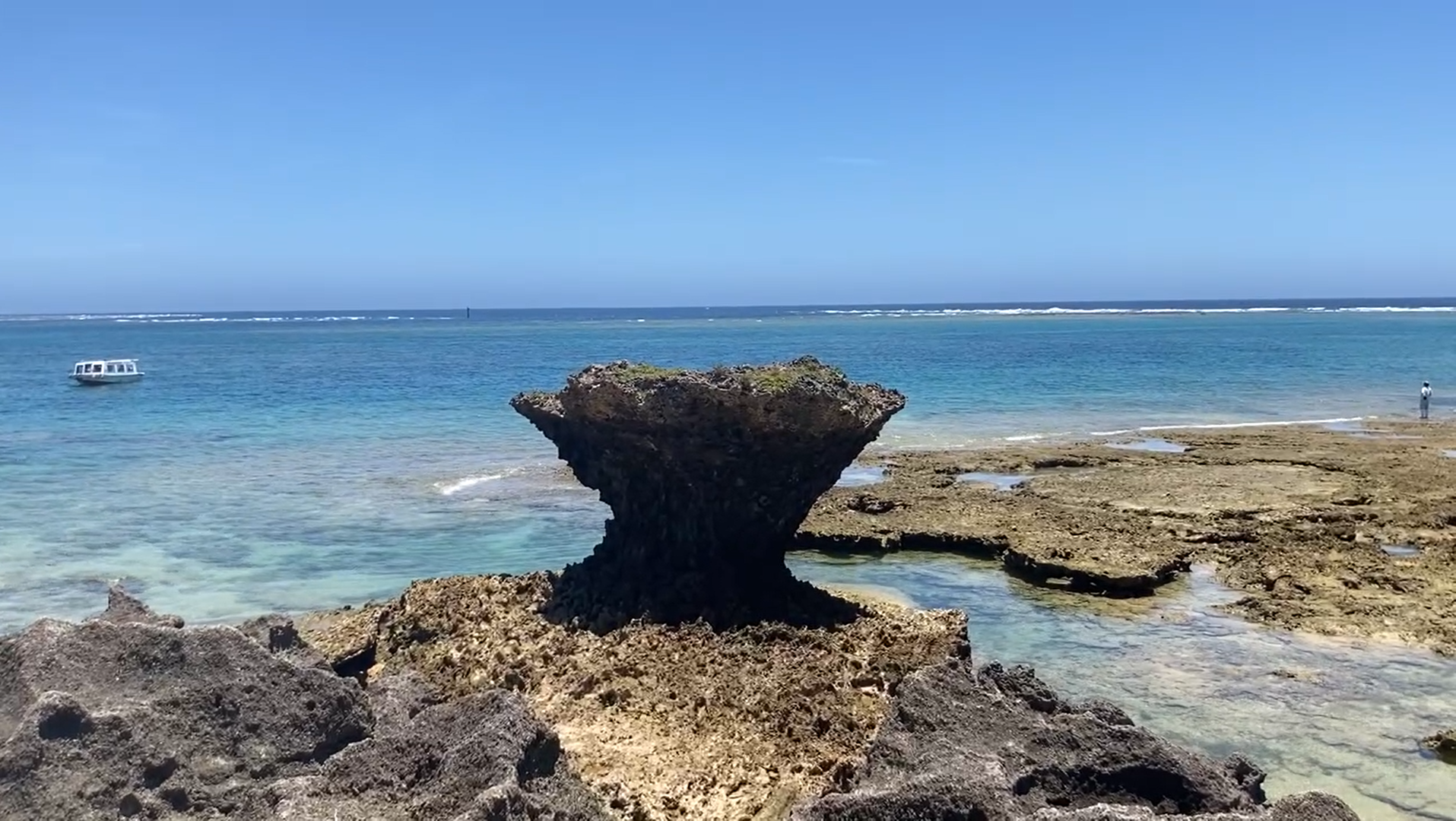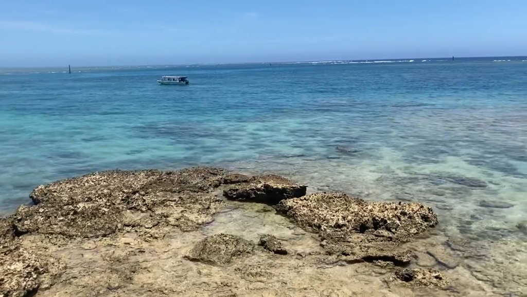グラスボートが、ゆったりと浮かんでいて癒されますね~。 あの辺りでお魚さん達が舞い踊っているんでしょうね。