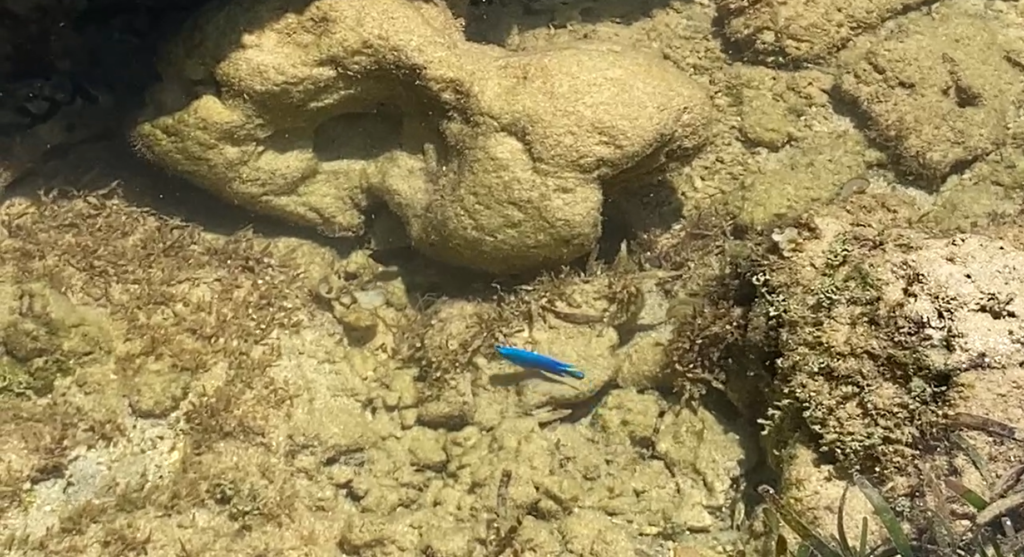 ルリスズメダイが!目の前でお魚さん達の追いかけっこも見る事が出来ます。