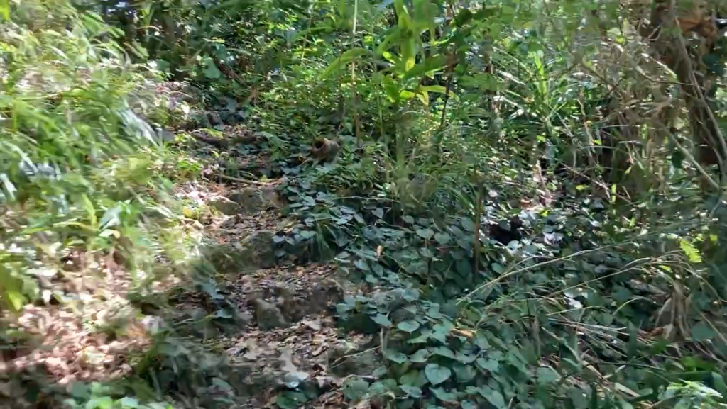 進んでいくと今帰仁城主の墓へ進む案内が。おお・・・これはなかなか・・・怖い(特にハブが)。ほぼ獣道に、ちょっとした階段や道の舗装がちょっとされているだけで、見事な茂み。怖いけど進みます。そこに道があるのだから。