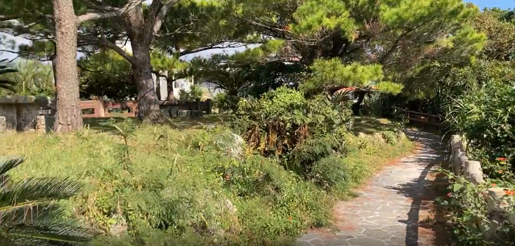 自然に囲まれた遊歩道があり、その先には東屋があって、そこから眺める海がまた綺麗なんです。
