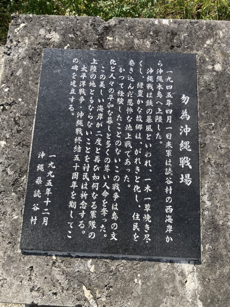 この場所は、第二次世界大戦時、沖縄に米兵が初めて上陸した浜なんだそうです。