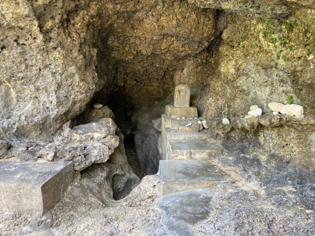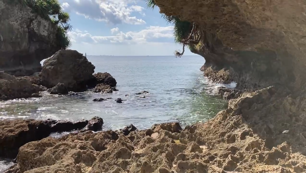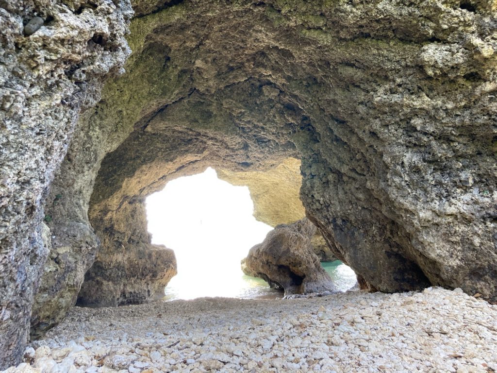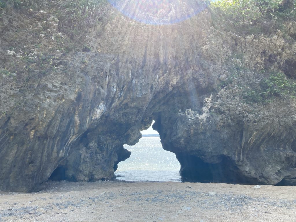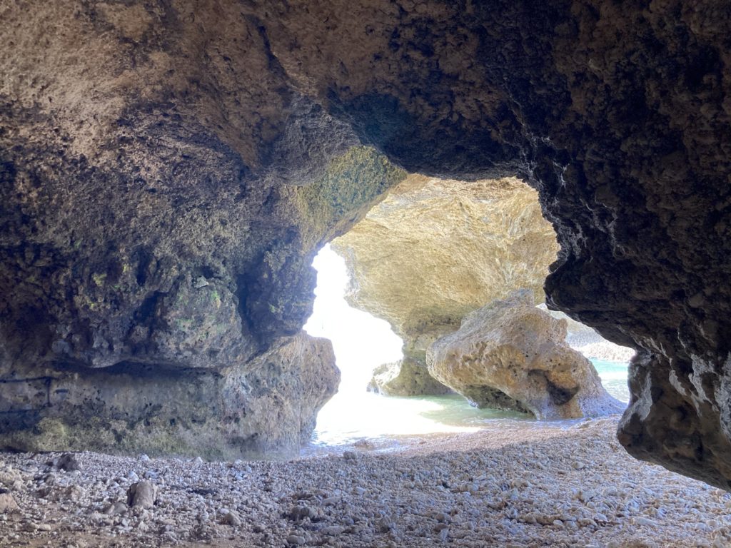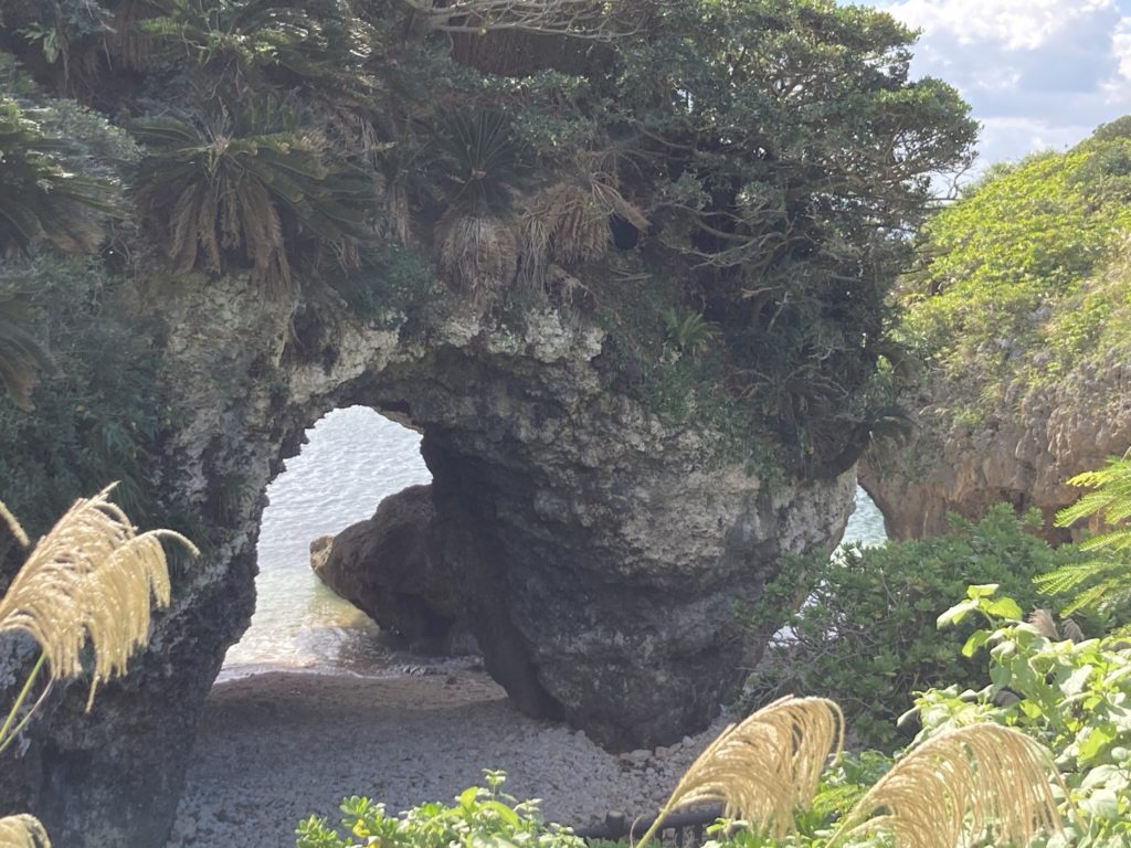 長い年月をかけ、波風で削れて出来た、琉球石灰岩のドーム。昔はここで、若者たちが歌や踊りの練習をしていたそうです。