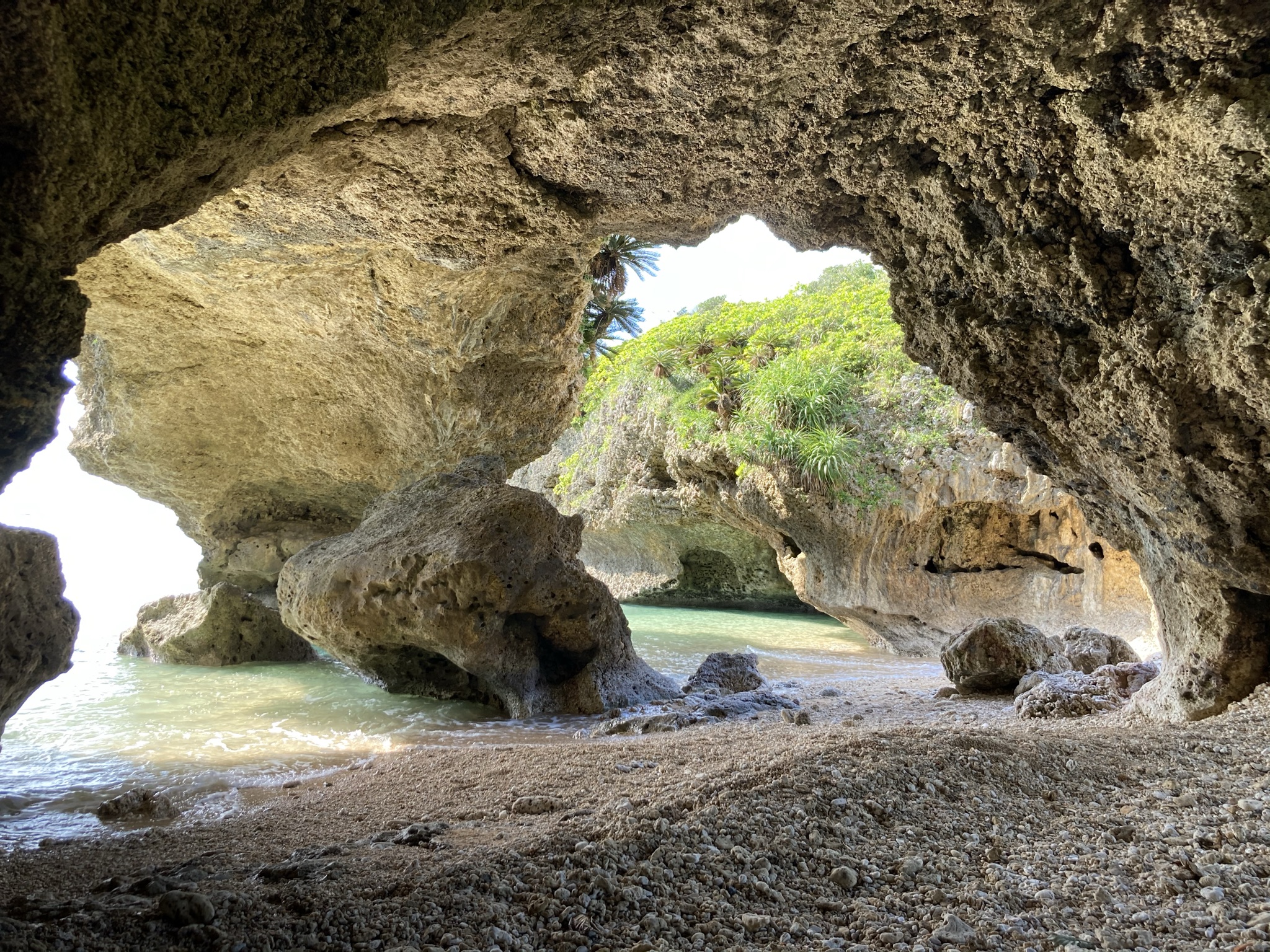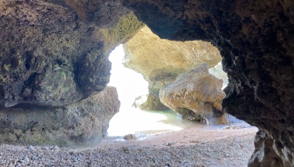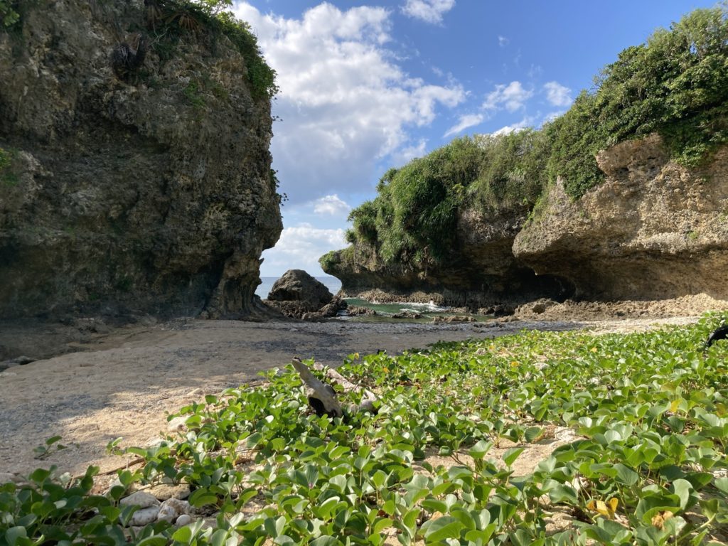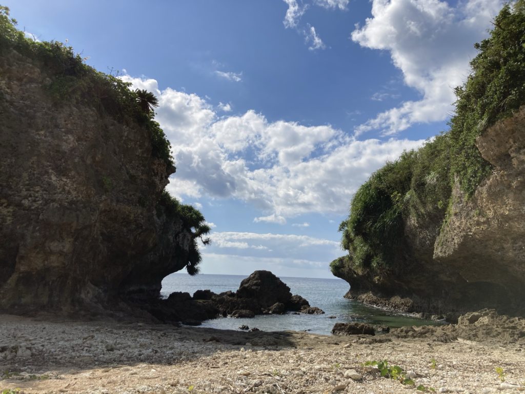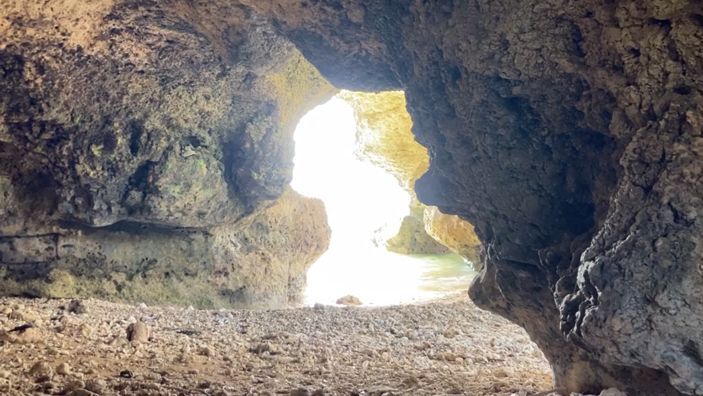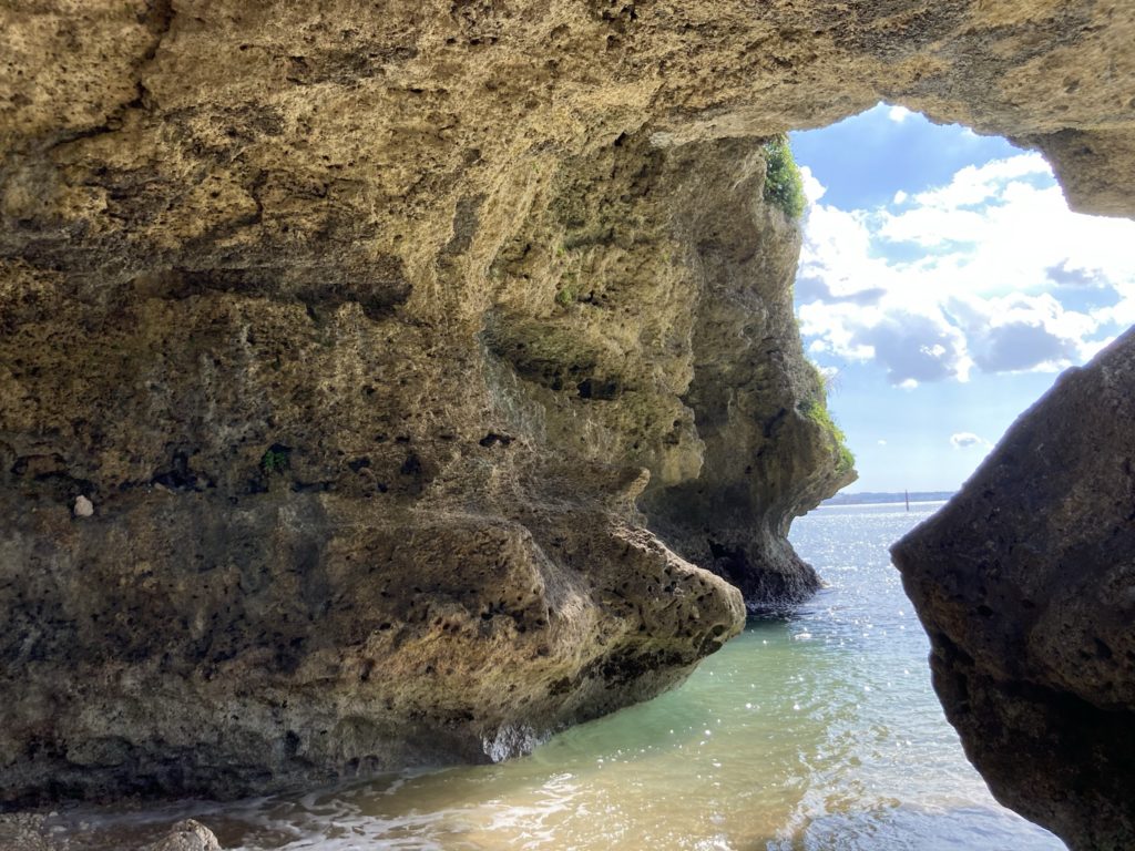 長い年月をかけ、波風で削れて出来た、琉球石灰岩のドーム。昔はここで、若者たちが歌や踊りの練習をしていたそうです。