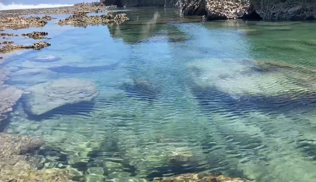 辺りにはタイドプール(潮だまり)もたくさんあり、中にはお魚さん達も泳いでいて、天然の水族館の中で泳ぐことも出来ます。 ちょっと離れた所に深めのタイドプールがあるようで、外国人さんが高台から飛び込みしてました。 また沖に向かって釣りをしてる方もいましたよ。