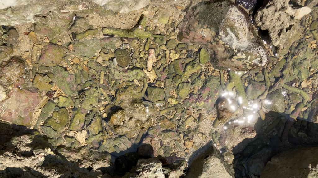 お魚さんやヤドカリさんいました!ちょっとわかりづらいですが、ちょっとしたところでも見る事が出来ます。シュノーケリングしなくても見る事が出来るので、小さなお子様と楽しく遊べますね!