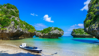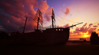 悠々と映っているのはインディアン・オーク号。この船には、中に乗り込むことも出来ます。かつて北谷の海で座礁したイギリス船を地元の人が救ったという話からそれを再現しているそうですよ。