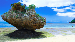 とっても広いロングビーチで、解放感にあふれる、ガイドブックにも載ってない穴場のビーチです。こちらは、泳ぐと言うよりも、のんびり散歩なビーチです。奇岩が不時着した様にちょこんと乗ってますよ。